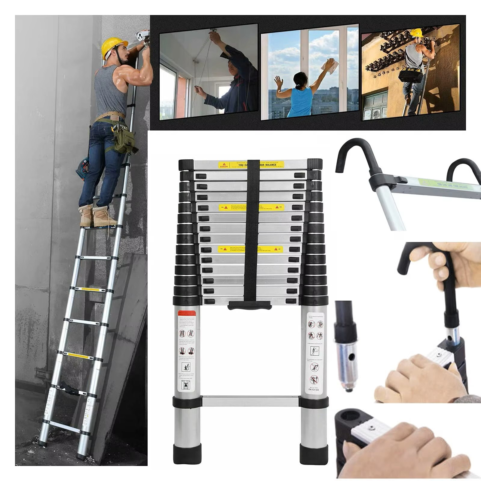 Made of high-strength aluminum alloy, the ladder is easy to carry and transport while remaining sturdy and durable.