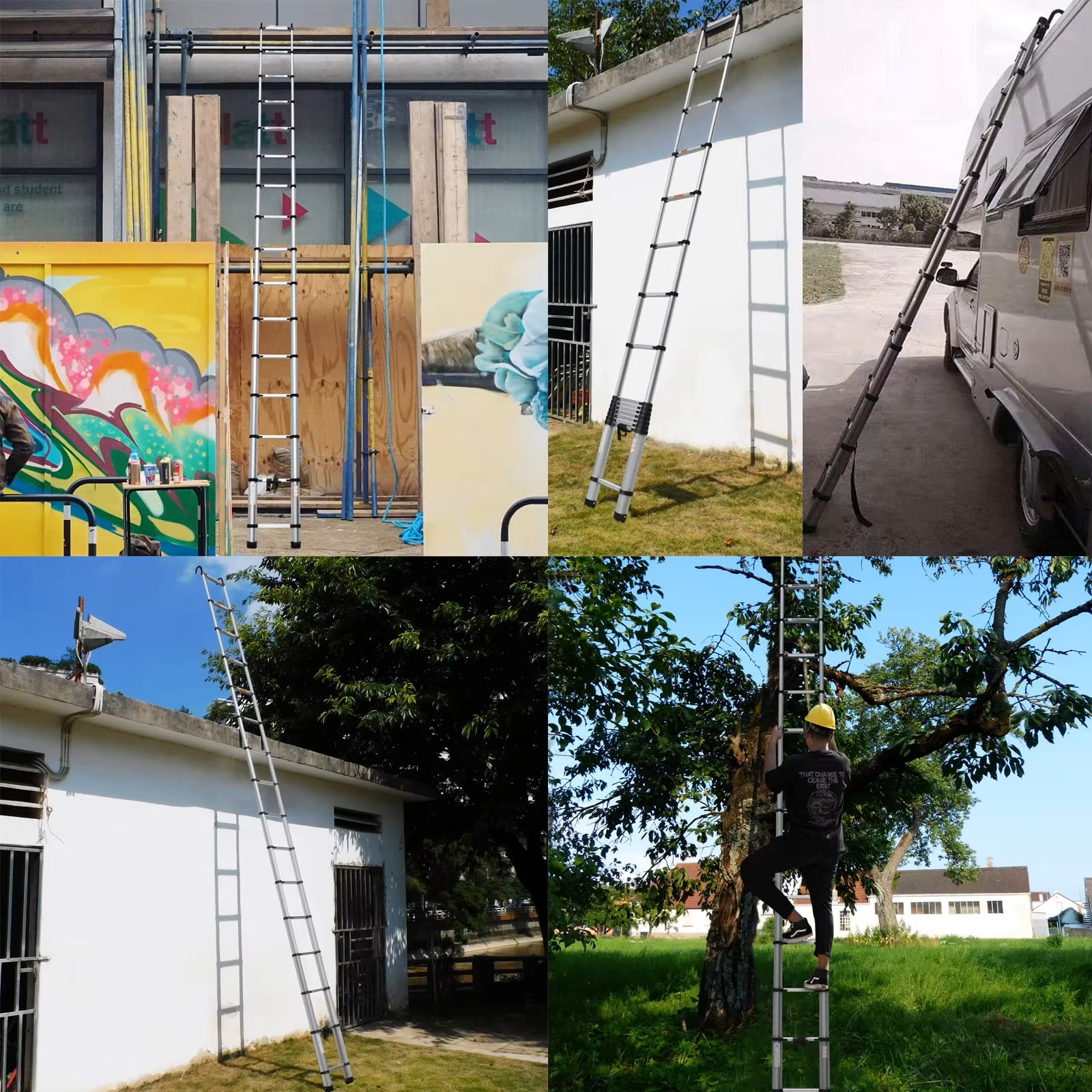 Made of high-strength aluminum alloy, the ladder is easy to carry and transport while remaining sturdy and durable.